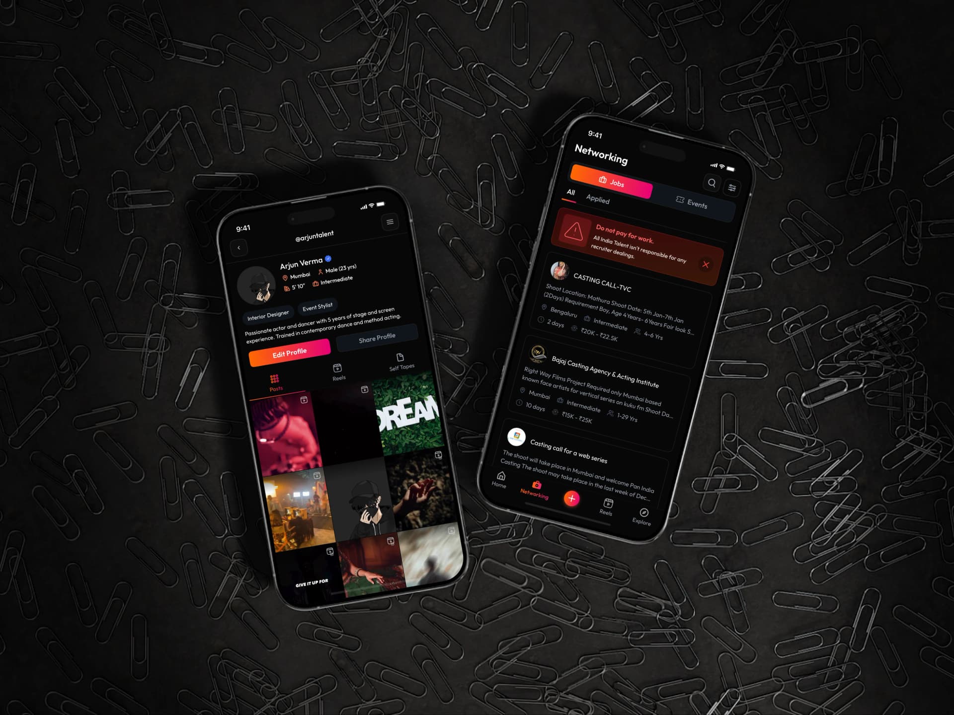 All India Talent is a full-stack platform connecting artists with recruiters in the entertainment and creative industry. Actors, models, dancers, singers, and photographers create profiles, upload portfolios, share reels and self-tapes, and apply for casting opportunities. Production houses, casting agencies, and brands post projects, search for talent, review portfolios, and manage applications — all in one place.