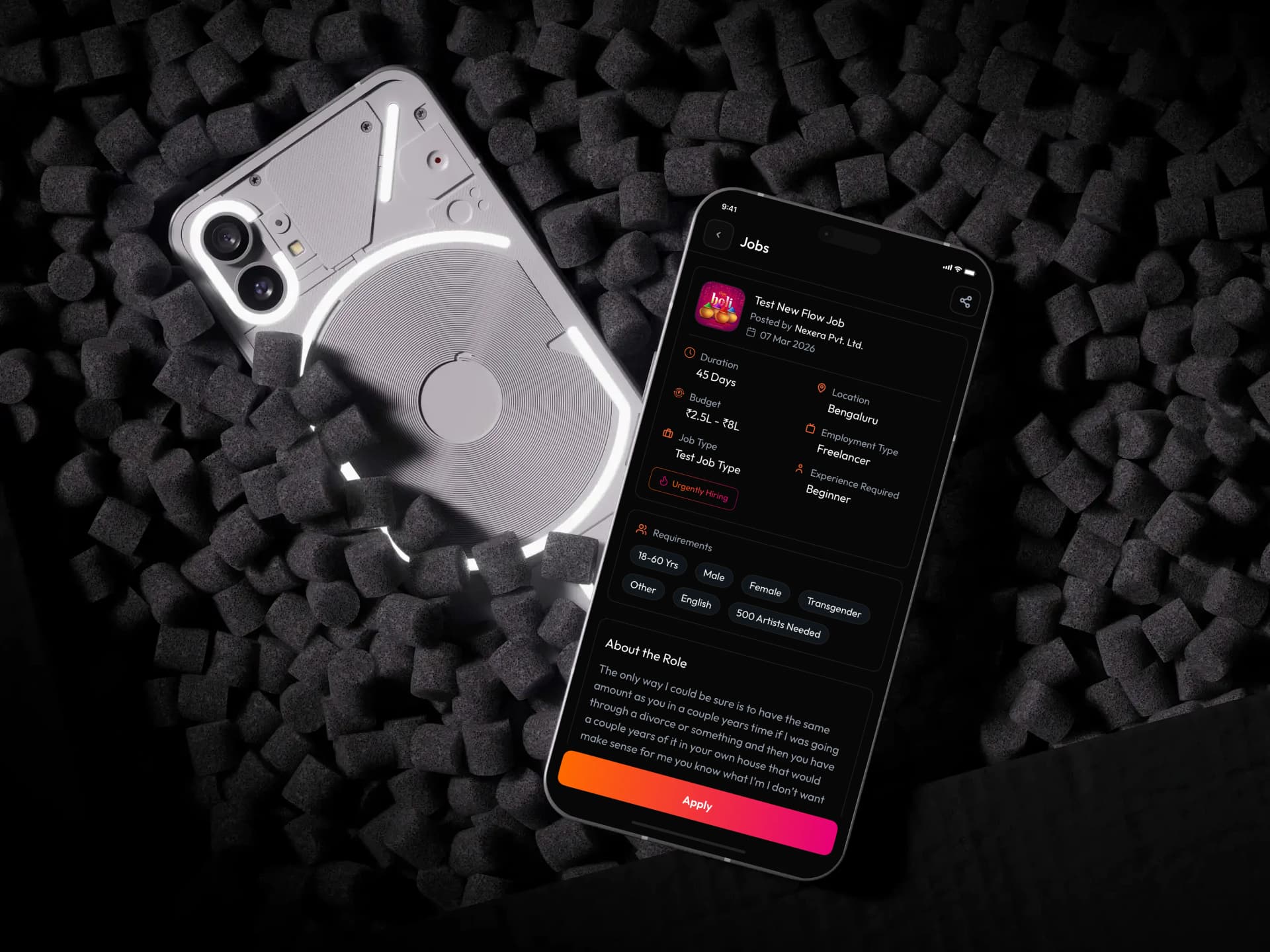 We started by mapping the two sides of the marketplace separately — what an artist needs to get discovered, and what a recruiter needs to find the right fit. From there we designed the product around three pillars: rich profile and portfolio tools for artists, powerful search and application management for recruiters, and a social feed that keeps both sides engaged. Native mobile apps were built alongside the web platform, sharing the same API layer so every feature works consistently across all surfaces.